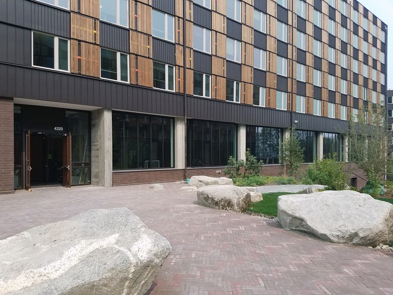 While the products installed by Mission Glass were not highly customized, they provided energy performance that far exceed those of the existing dorms that were torn down, as well as outperformed the minimum code requirements, all which help to reduce heating & cooling loads over the life of the new buildings. The high recycled content of the aluminum extrusions also helped greatly to contribute to the project receiveing LEED(R) Gold Certification.